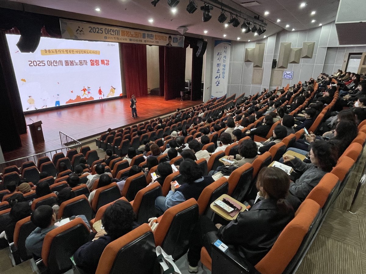 [금요저널] 아산시는 19일 시청 시민홀에서 관내 돌봄노동자 300여명이 참석한 가운데 ‘2025년 아산시 돌봄노동자 힐링특강’을 개최했다.