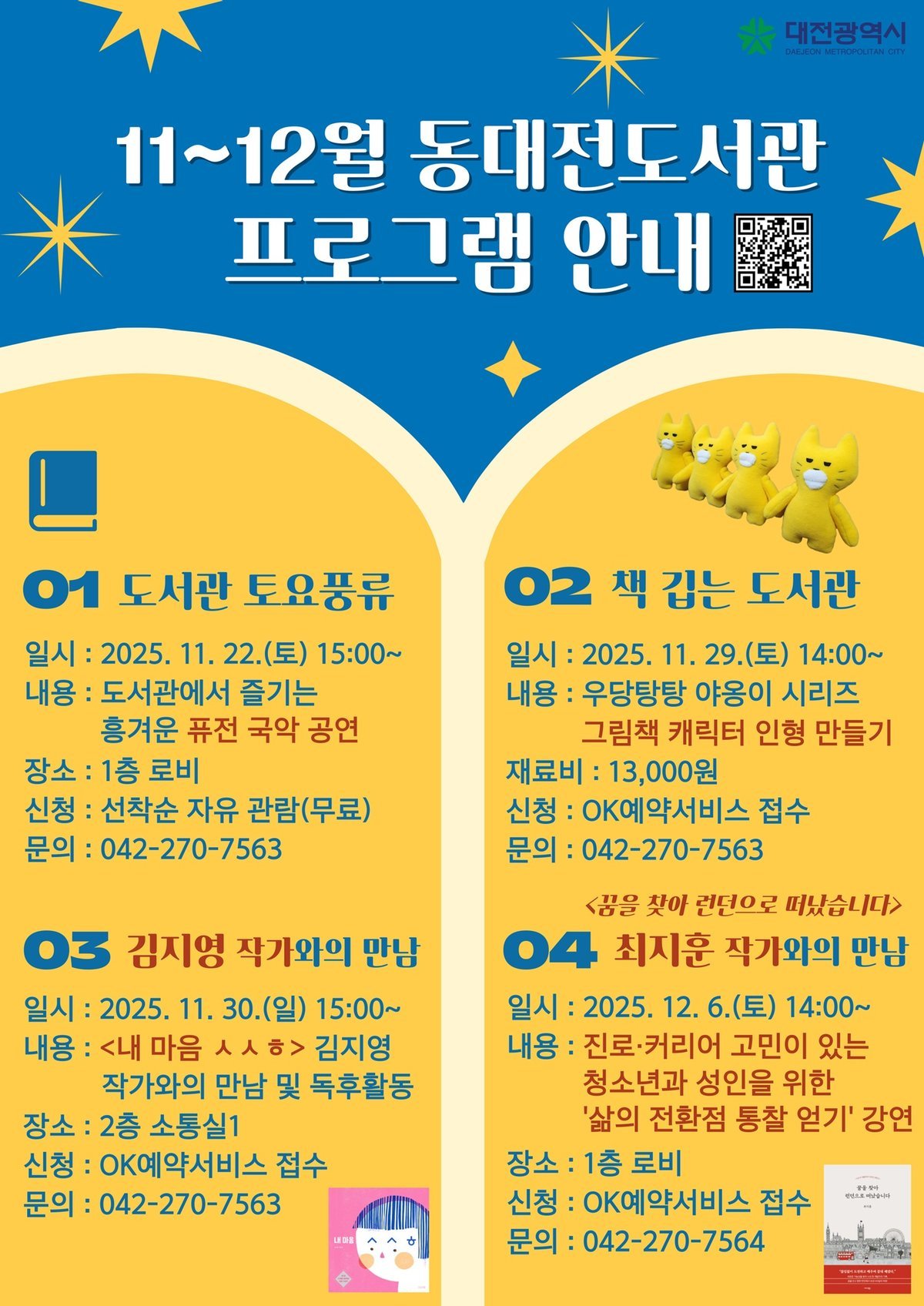[금요저널] 대전시 동대전도서관은 2025년 연말을 맞아 11월부터 12월까지 어린이, 청소년, 성인 등을 대상으로 다양한 독서문화 프로그램을 준비했다.