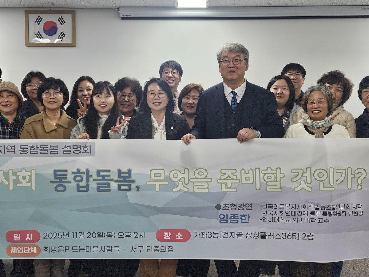 [금요저널] 인천광역시 서구의회 고선희 의원은 20일 건지골상상플러스365에서 열린 ‘인천 서구지역 통합돌봄 설명회-지역사회 통합돌봄 무엇을 준비할 것인가’에 참석해 서구 통합돌봄 정책의 방향과 과제를 논의했다.