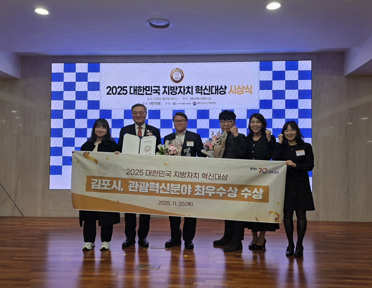 [금요저널] 김포시가 ‘2025 대한민국 지방자치 혁신대상’ 관광혁신분야 최우수상을 수상하며, 차별화된 관광정책의 성과를 대외적으로 인정받았다. 이번 수상은 김포시가 추진해 온 관광정책의 전략성과 혁신성, 특히 접경지의 한계를 기회로 전환한 창의적 접근이 높은 평가를 받았다.