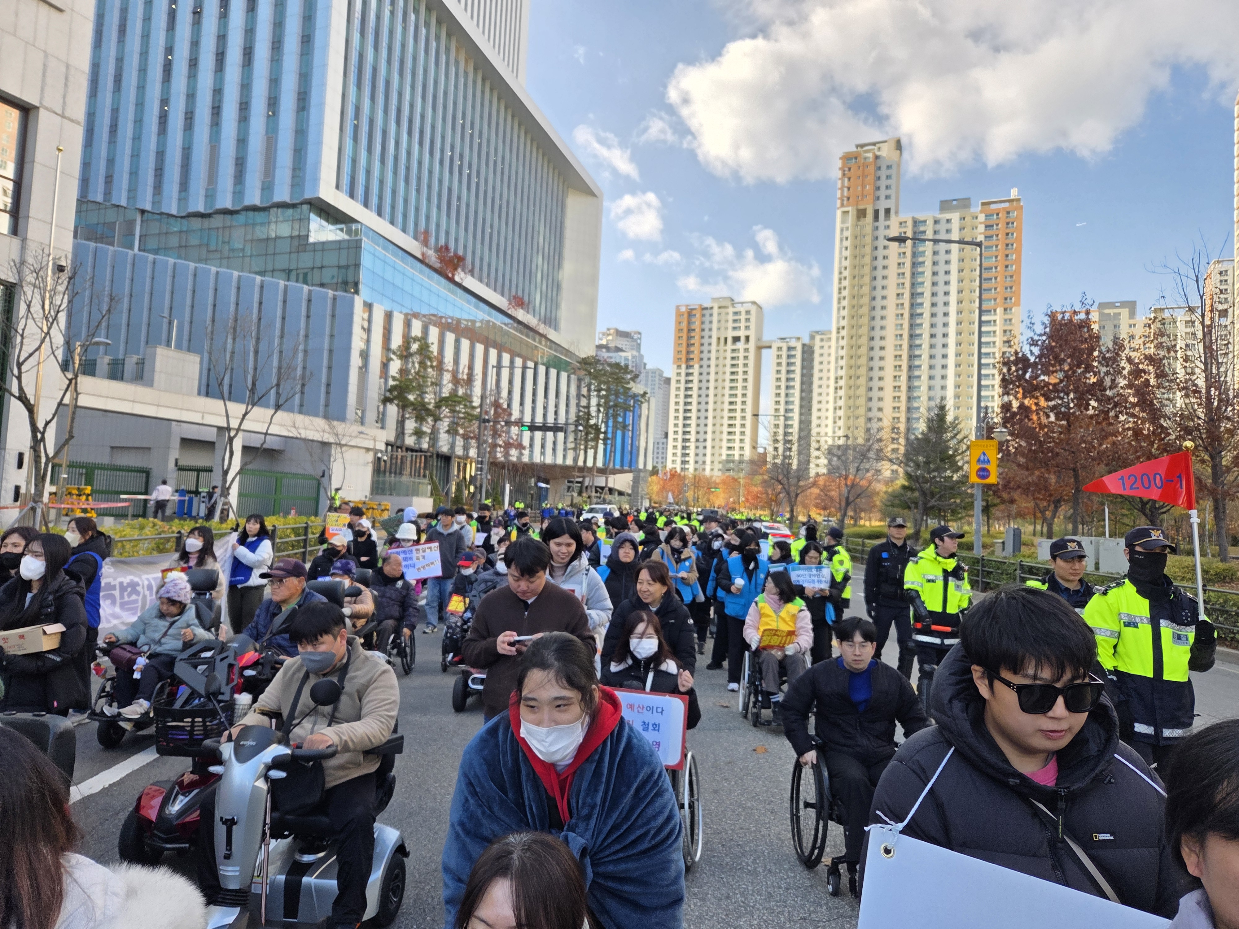 이날 현장에는 경자연 소속 장애인자립생활센터 활동가와 전국 각 지역의 장애인자립생활센터 활동가 500여 명이 참석하여, 지난 11월 5일 발표된 2026년도 예산안에서 55개 장애인자립생활센터 도비 지원예산이 대폭 삭감된 초유의 사태에 대해 김동연 경기도지사의 책임 규명과 즉각적인 시정을 강력히 촉구했다.
