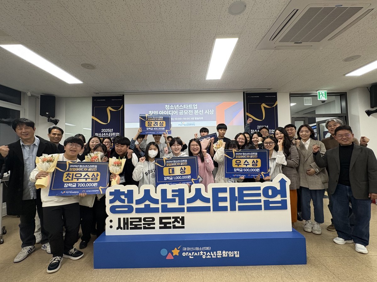 [금요저널] 아산시청소년재단 아산시청소년문화의집은 22일 지역 청소년 창업가 발굴과 진로 역량 강화를 위해 개최한 ‘2025년 아산 청소년 창업아이디어 경진대회’를 성황리에 마쳤다고 밝혔다.