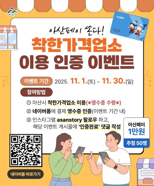아산시 착한가격업소 신규 모집 및 이용 인증 이벤트 추진