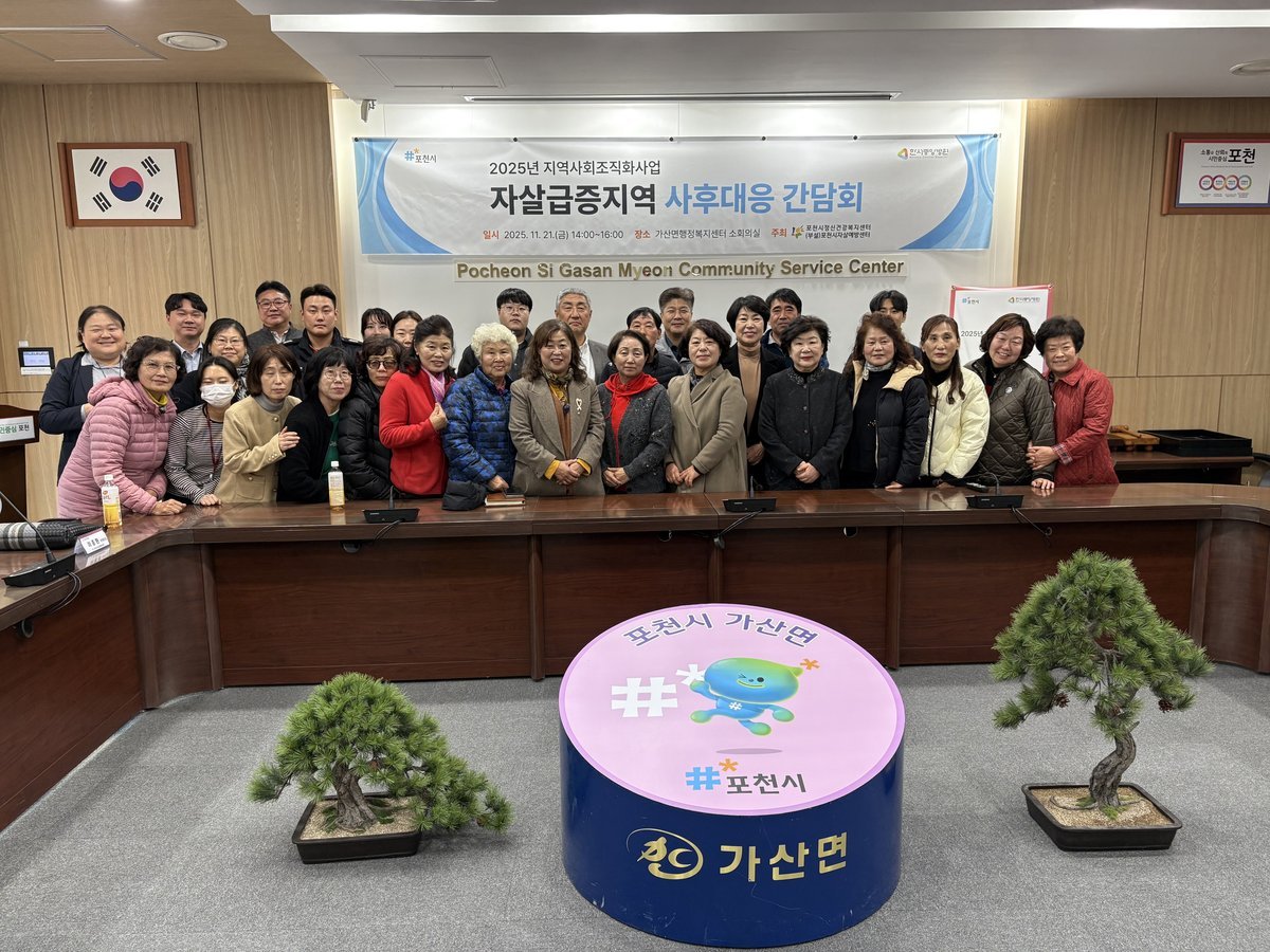 포천시보건소, 포천경찰서, 포천소방서, 포천시종합사회복지관, 가산면행정복지센터, 가산면지역사회보장협의체, 대한적십자사 포천지구 등 자살예방센터를 포함한 7개 기관 관계자들이 참석해 자살 고위험군 조기 발굴과 연계 체계 강화, 지속가능한 협력 방안 등에 대해 심도 있게 의견을 나누고, 정기적인 정보 공유와 협력체계 강화 등 지역 자살예방 네트워크를 내실화하고, 자살률 감소에 기여하기로 뜻을 모았다.