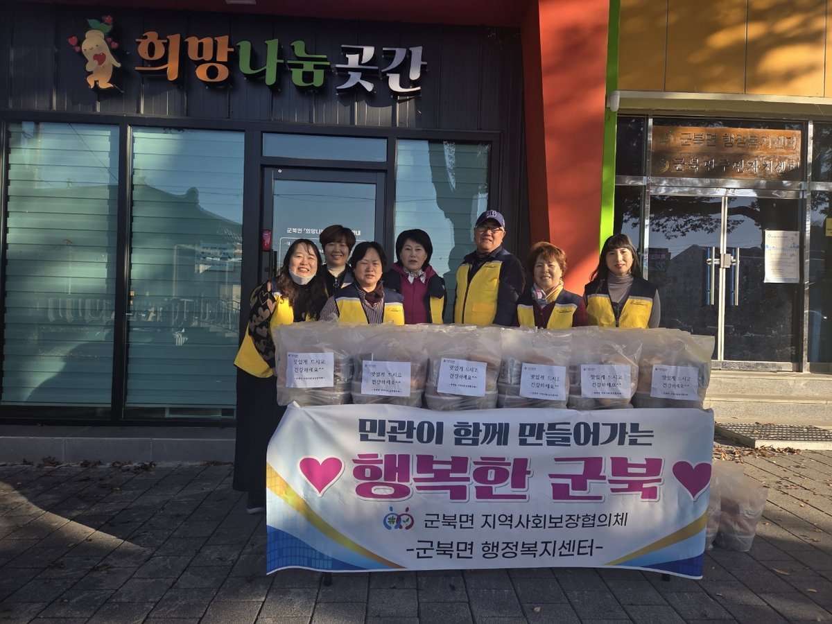 박순춘 민간위원장은 “협의체 위원님들과 준비한 밑반찬으로 따뜻한 한 끼 식사를 하셨으면 한다”며 “앞으로도 지속적인 나눔 활동을 통해 복지사각지대를 해소하고 살기 좋은 군북면을 만들 수 있도록 최선을 다하겠다”고 말했다김일지 군북면장은 “·지역사회보장협의체 위원들의 이웃 사랑이 주민들에게 큰 힘이 됐다”며 “앞으로도 민관이 협력해 주민이 체감할 수 있는 특화사업을 발굴하고 복지안전망을 구축할 수 있도록 최선을 다하겠다”고 말했다.