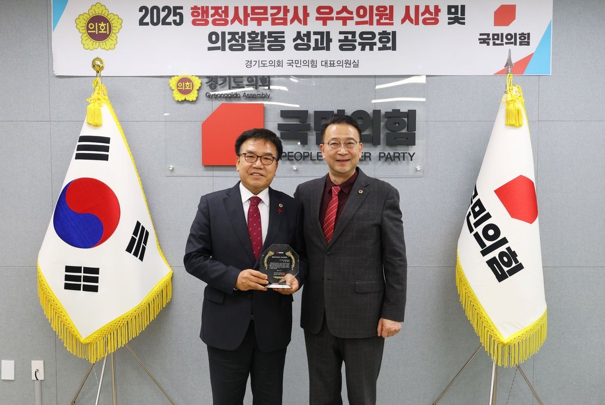 이번 시상식은 경기도의회 국민의힘 대표단에서 주최했으며, 행정사무감사과정에서 도민 중심의 정책 대안을 제시하고, 실효성 있는 민생 정치를 실현한 의원을 선정·격려하기 위해 마련됐다.