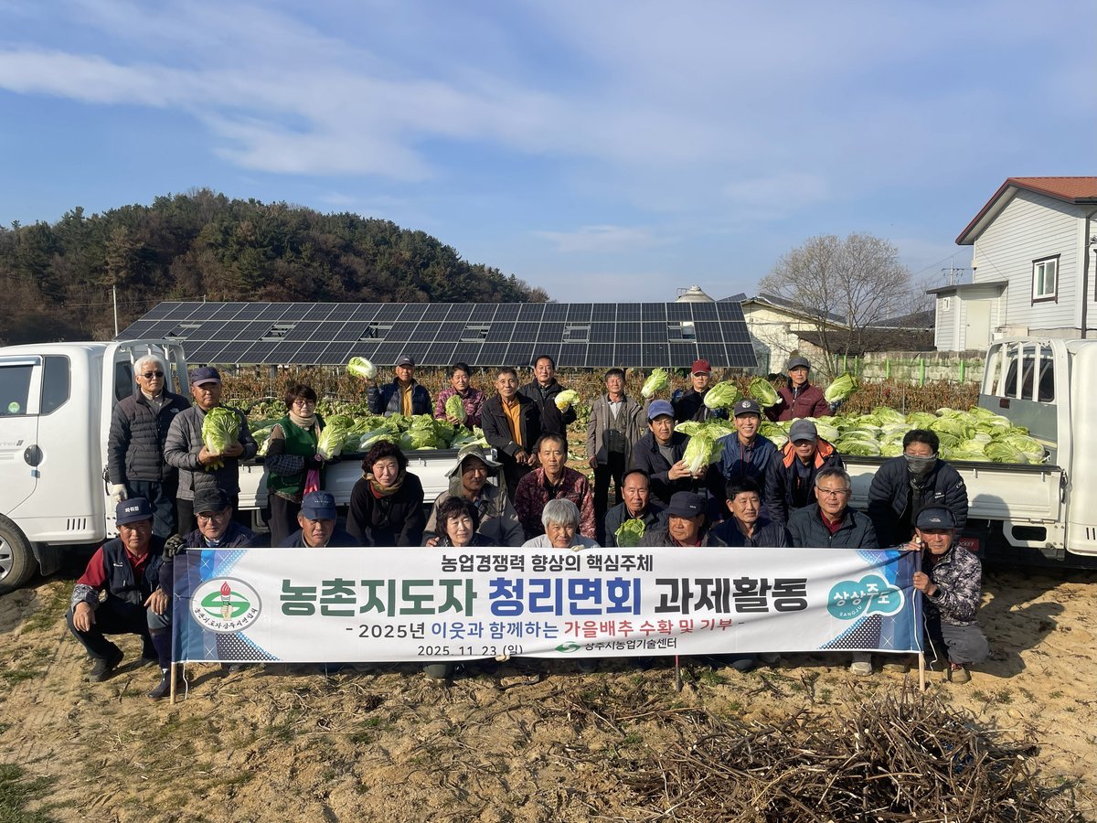 [금요저널] 상주시농업기술센터에서 학습조직체로 육성하고 있는 농촌지도자 청리면회는 11월 24일 회원들이 직접 재배한 배추 500포기를 수확하여 지역사회 김장김치 나눔 행사에 기부하였다.