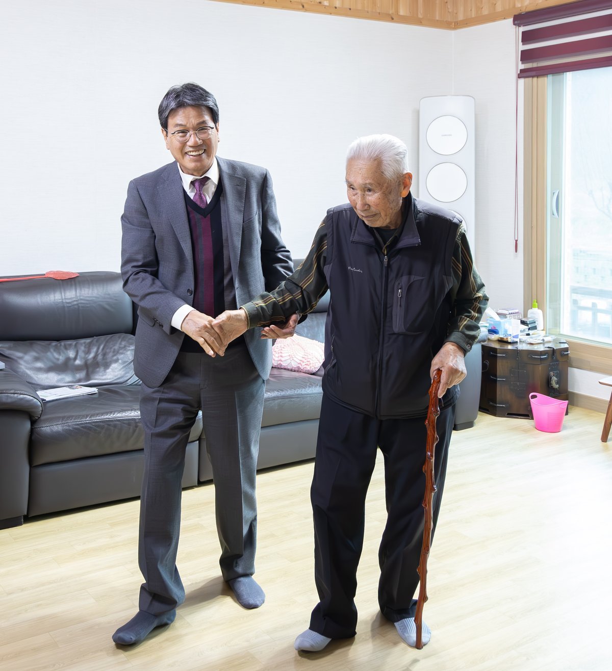 군은 이 가운데 화성면 농암리에 거주하시는 김우식 어르신 댁을 직접 방문해 장수지팡이와 대통령 축하 서한을 전달하며 무병장수와 행복을 기원했다.