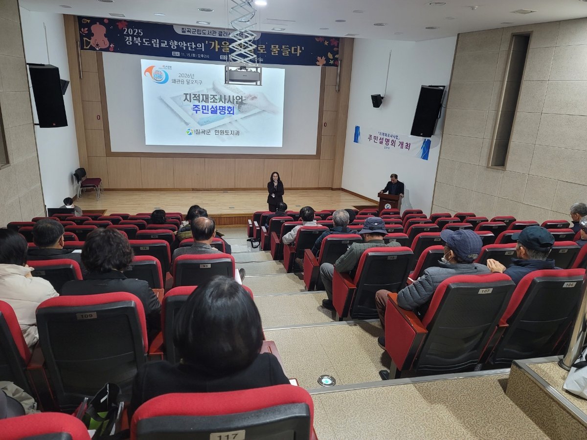 [금요저널] 칠곡군은 지난 11월 24일까지 2026년 지적재조사사업 대상지 3개 지구 주민을 대상으로 주민설명회를 개최하고, 사업 추진 사항과 향후 일정 등을 안내하며 주민 의견을 수렴하는 자리를 마련했다.