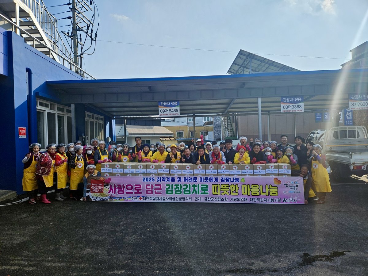 [금요저널] 대한적십자봉사회 금산군지회는 지난 24일 금산읍행정복지센터에서 봉사원 및 지역주민 50여 명이 참여한 가운데 사랑의 김장 나눔에 나섰다.