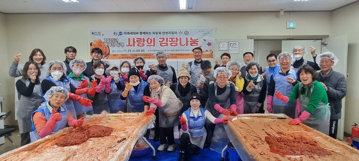 [금요저널] 아산시는 한국자유총연맹 아산시지회와 아산시북한이탈주민정착지원센터가 25일 북한이탈주민들의 겨울철 김장김치를 지원하기 위한 ‘2025년 행복한 동행 가족 사랑의 김장나눔’행사를 성황리에 개최했다고 밝혔다.