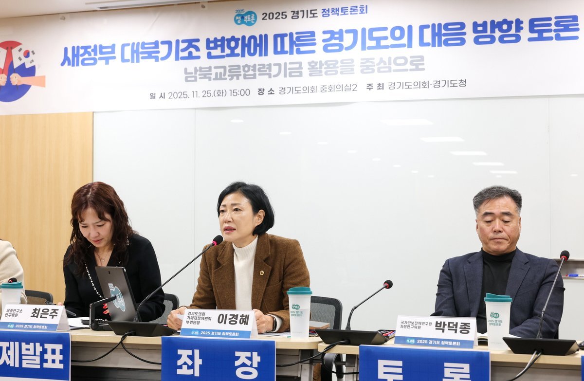 [금요저널] 경기도의회 기획재정위원회 이경혜 부위원장이 좌장을 맡은 「새정부 대북기조 변화에 따른 경기도의 대응방향 토론회: 남북교류협력기금 활용을 중심으로」가 11월 25일 경기도의회 중회의실2에서 개최됐다.