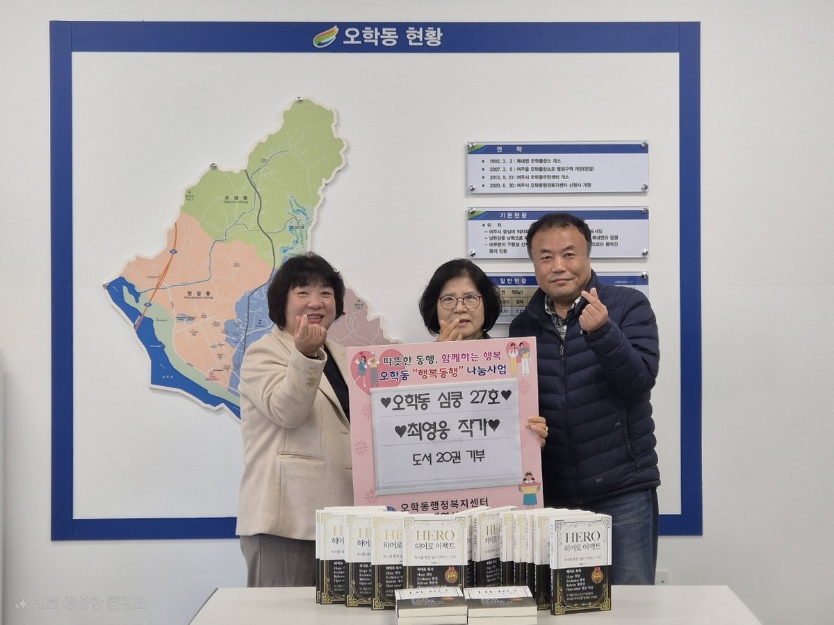 오학동 행정복지센터 김병선 동장은 “이번 기부는 지역 사회와의 연결을 강화하는 좋은 기회가 될 것이다. 기부된 책이 청소년들에게 큰 도움이 되기를 바란다”며 감사의 말을 전했다.