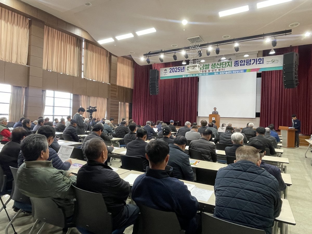 [금요저널] 평택시는 지난 26일 농업기술센터에서 슈퍼오닝 브랜드쌀 생산단지 참여 농업인들과 평택 관내 4개 농협 RPC, 오성법인 직원 등 100여 명이 참석한 가운데 2025년 슈퍼오닝 쌀 생산단지 종합 평가회를 개최했다.
