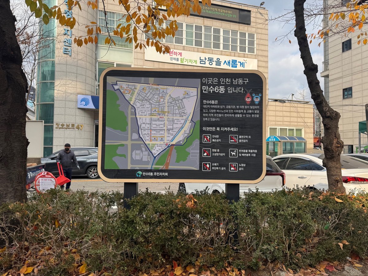 2025년 주민자치회 지원사업의 일환으로 추진된 우리 동네 지도안내판은 만수6동 행정복지센터 앞과 인주대로888번길 장승백이 전통시장 공영주차장 인근 도로 2개소에 설치됐다.