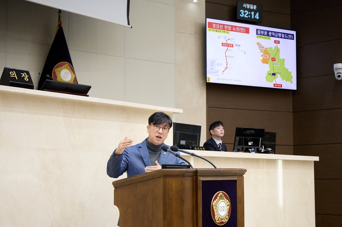 한편, 김 의원은 2023년에 추진됐다가 중지된 ’동천–죽전–마북–동백 철도망 구축 용역‘의 중단 배경을 질의하며, 동백–신봉선과 동천–죽전–마북–동백 철도망의 연계 필요성을 강조했다.김 의원은 “해당 용역은 마북 연구단지와 단국대를 연결하는 ‘신산업 혁신밸리’조성과 맞물려 추진돼야 한다”며, 철도망 구축과 지역 일자리 정책을 연계한 종합 전략 마련을 시에 강하게 요청했다.