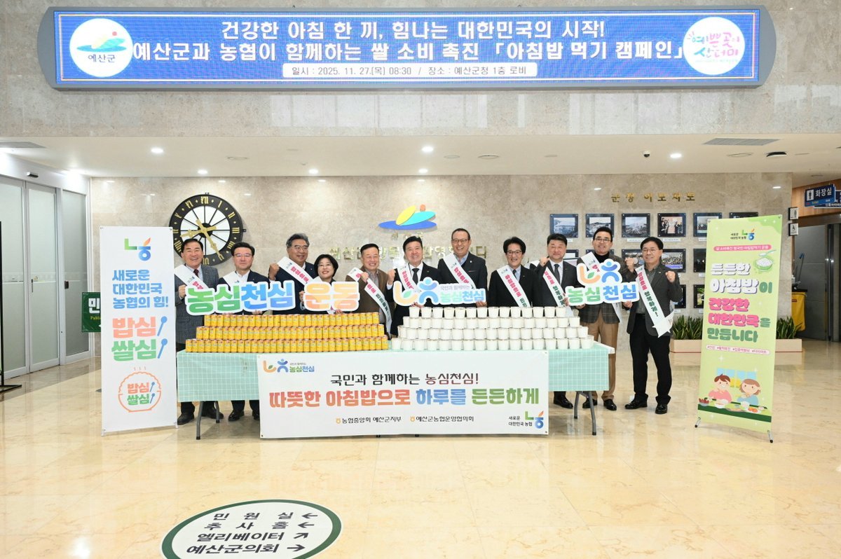 [금요저널] 예산군은 지난 11월 27일 농협중앙회 예산군지부와 함께 ‘쌀 소비촉진 범국민 아침밥 먹기 캠페인’을 성황리에 개최했다고 밝혔다.
