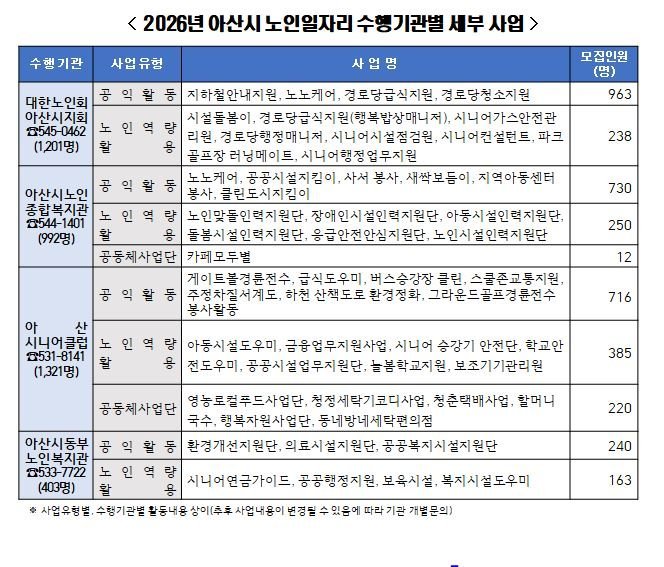 아산시, 2026년 노인일자리 등 참여자 3917명 모집 (아산시 제공)