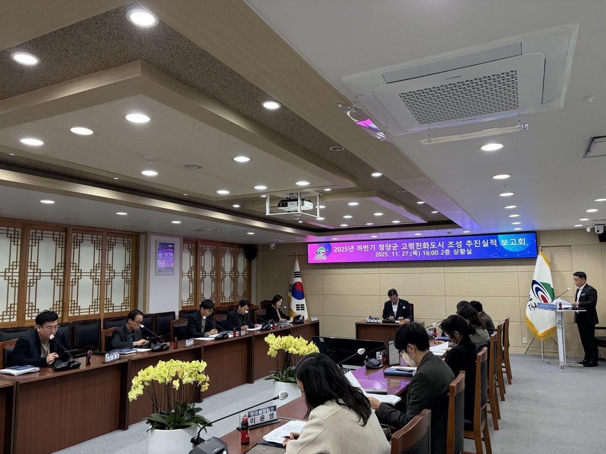 군은 지난 27일 군청 상황실에서 윤여권 부군수 주재로 부서별 고령친화정책 추진 팀장 등 15명이 참석한 가운데 ‘2025년 하반기 청양군 고령친화도시 조성 실무협의회 및 추진실적 보고회’를 개최했다.