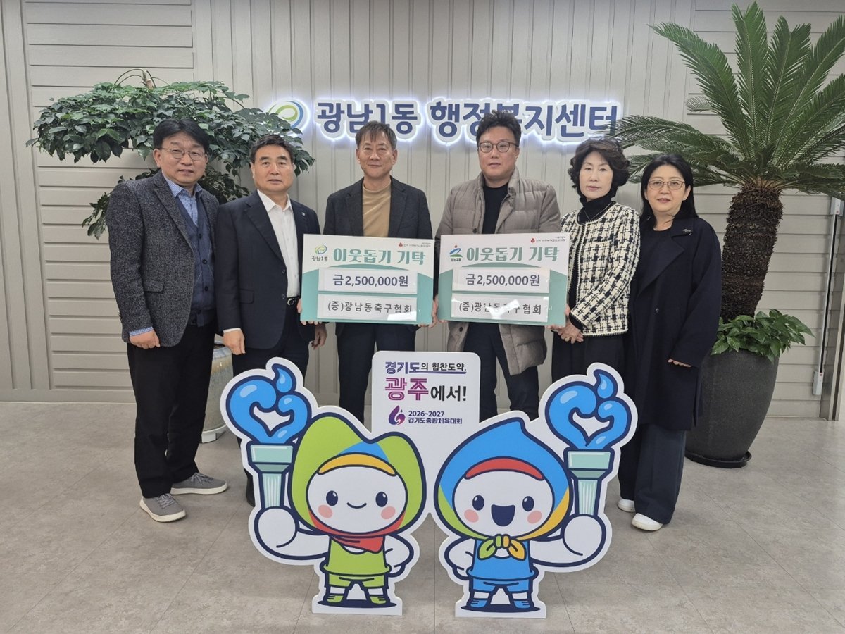 이에 대해 전동진 광남1동장과 정경아 광남2동장은 “매년 의미 있는 나눔을 실천해 주시는 광남동축구협회에 깊이 감사드린다”며 “기탁된 성금은 지역 내 취약계층을 위해 소중히 사용하겠다”고 전했다.