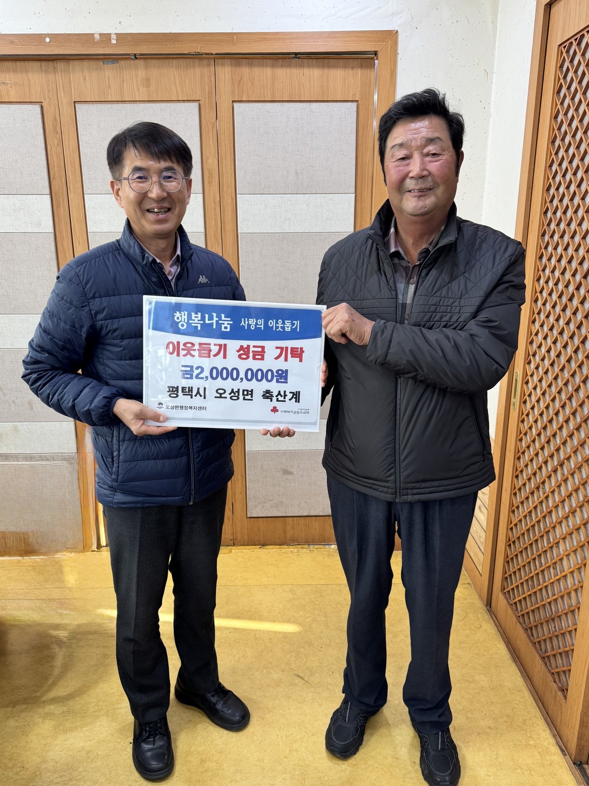 오성면 축산계는 매년 연말마다 취약계층 지원을 위한 성금을 꾸준히 전달해 온 지역 대표 나눔 실천 단체다.