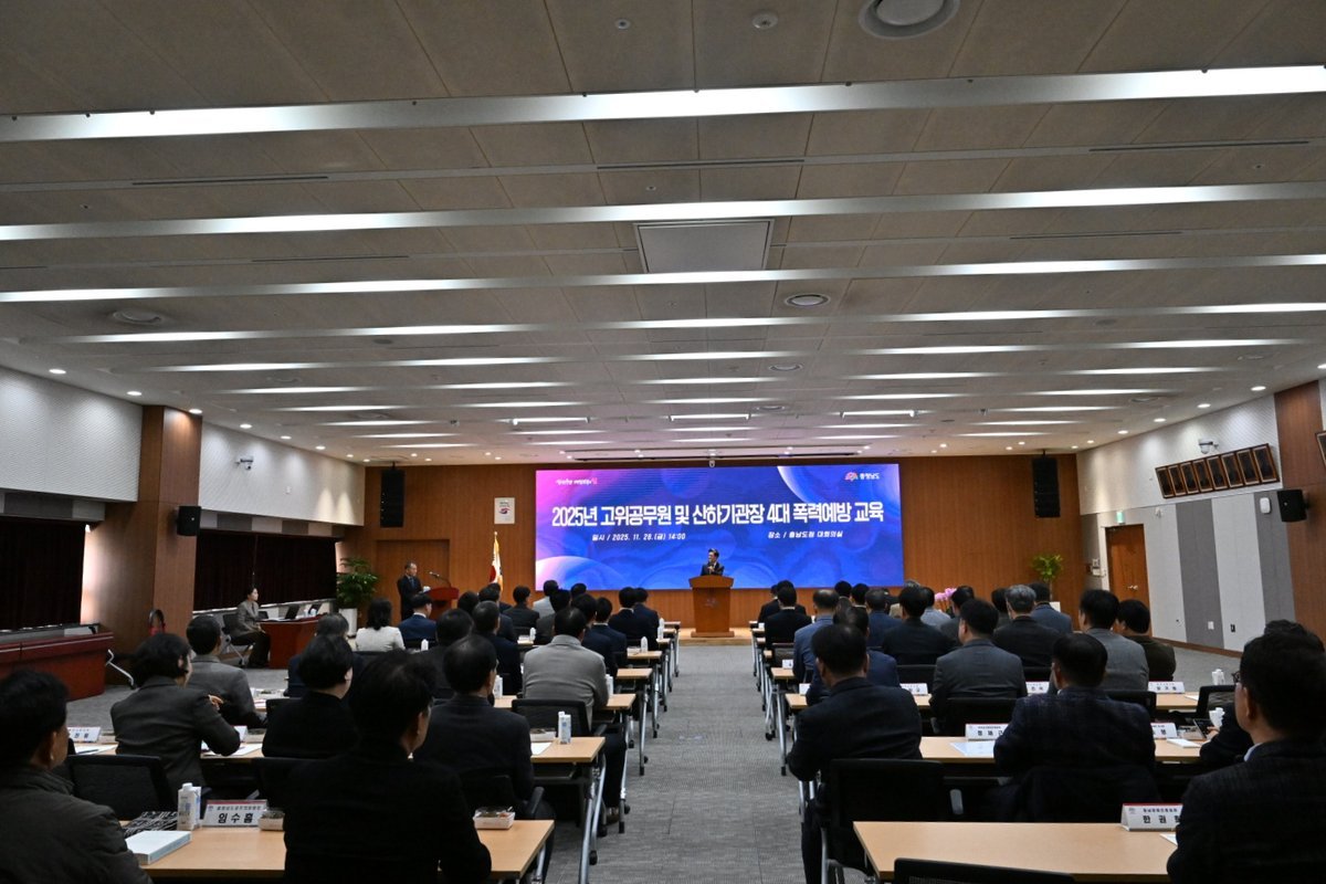 [금요저널] 충남도는 28일 도청 대회의실에서 ‘2025년 고위 공무원·산하 기관장 4대 폭력 예방 교육’을 진행했다.