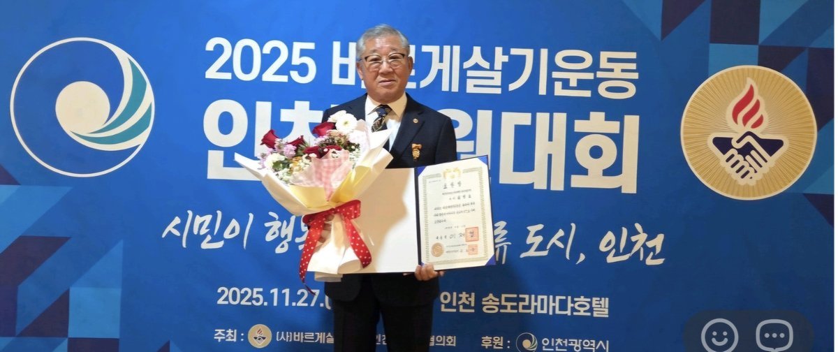 [금요저널] 바르게살기운동 옹진군협의회 김철호 회장이 ‘2025년 바르게살기운동 인천 회원대회’에서 최고 영예인 ‘대통령 표창’을 수상했다고 28일 밝혔다.