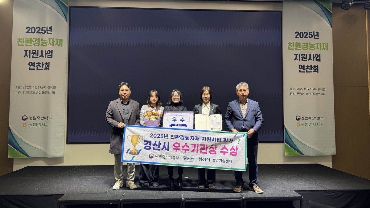 [금요저널] 경산시는 27일 세종시 코트야드 메리어트에서 열린 농림축산식품부 주관의 2025년 친환경농자재 지원사업 연찬회에서 「친환경농자재 지원사업 평가」 우수 기관상을 수상했다고 밝혔다.