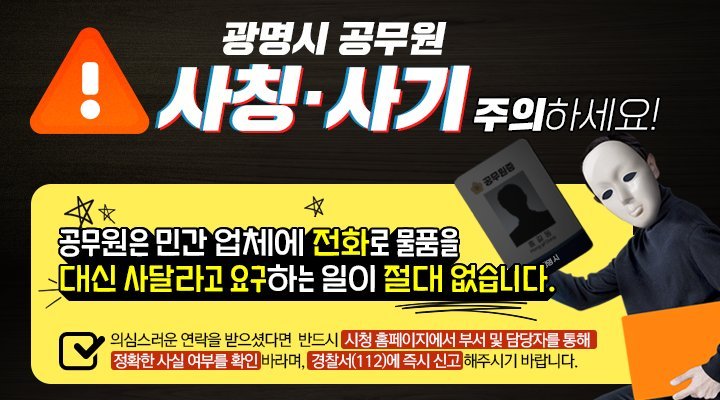 [금요저널] 광명시는 최근 공무원을 사칭한 사기 사례가 지속적으로 발생하자 지역 소상공인과 자영업자에 각별한 주의를 당부했다.