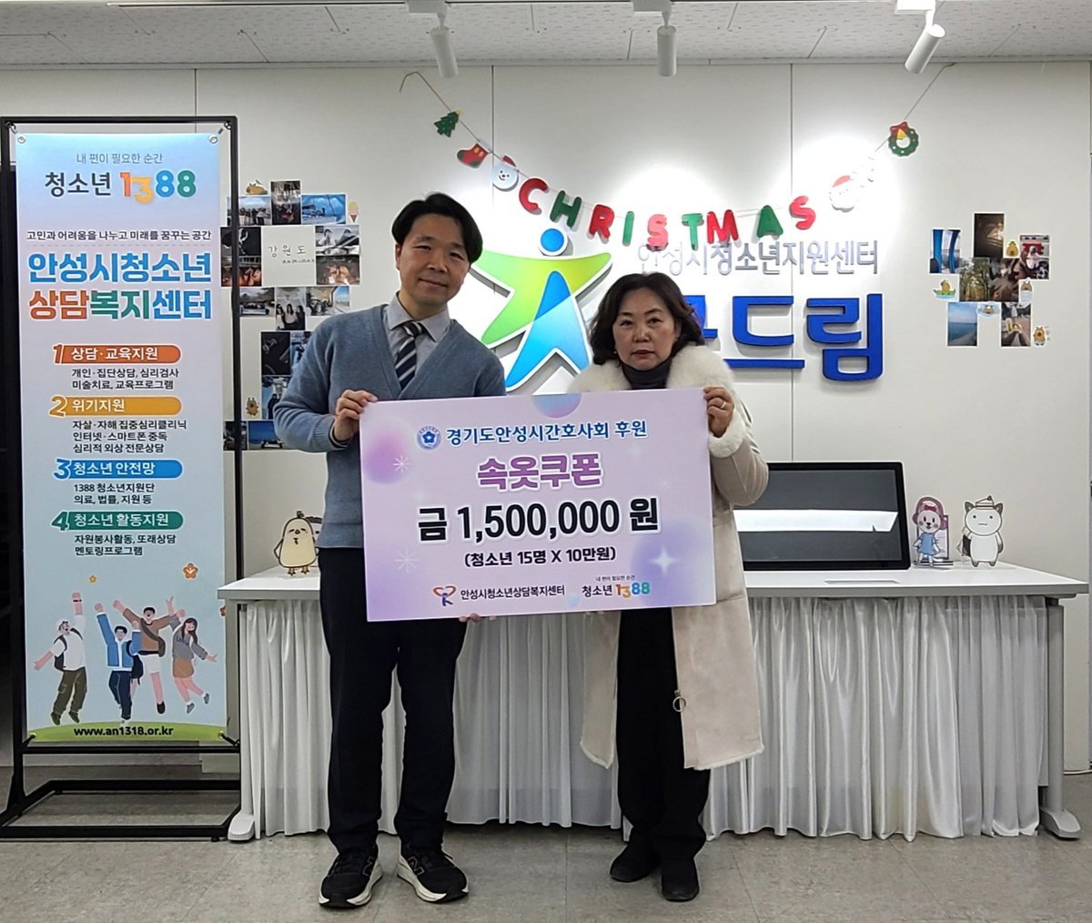 경기도안성시간호사회는 안성시1388청소년지원단의 복지지원단으로서, 지역사회 내 위기청소년들이 더 나은 환경에서 성장할 수 있도록 주기적인 후원활동을 펼치고 있다.