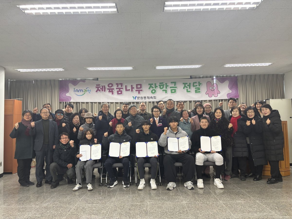 이번 장학금은 ‘과천시민 체육대축전’에 참여한 마을 주민들의 찬조금으로 마련되었으며, 야구 1명, 유도 2명, 수영 1명, 태권도 1명 등 총 5명의 꿈나무에게 각각 50만 원에서 100만 원이 지원됐다.