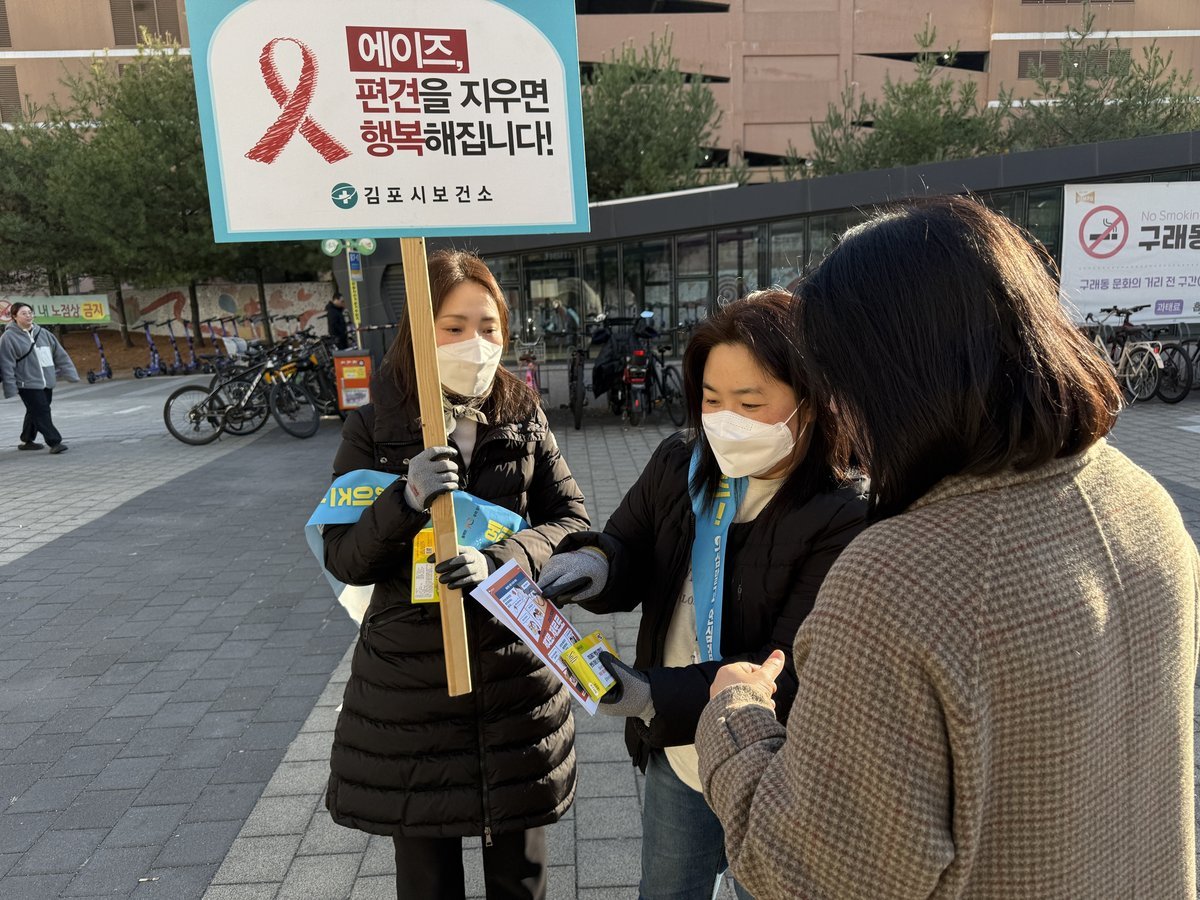 [금요저널] 김포시보건소는 12월 1일 ‘세계 에이즈의 날’을 맞아 유동 인구가 많은 구래역 일대에서 ‘예방과 실천은 제대로, 감염과 전파는 제로로!’라는 주제로 에이즈 예방 및 인식개선 캠페인을 실시하였다.