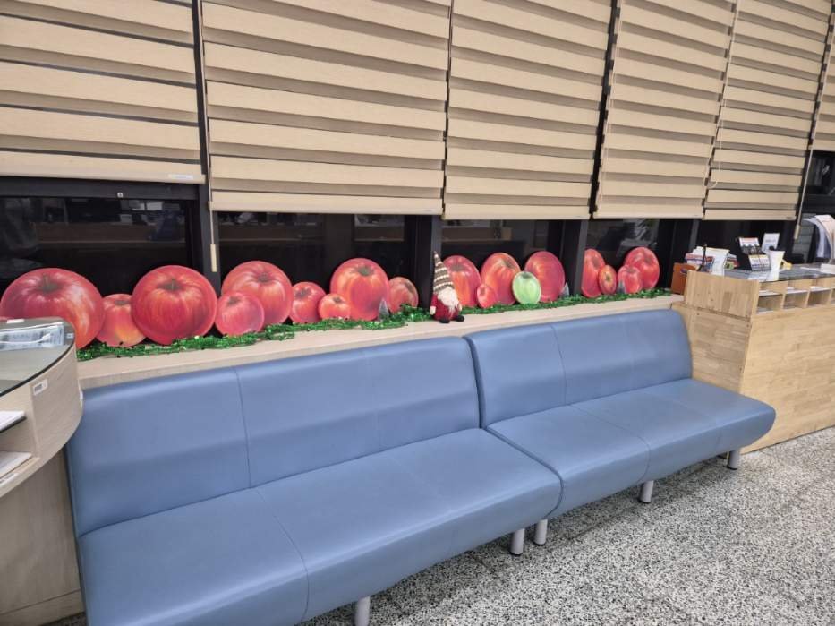특히, 주민자치센터 프로그램인 ‘감성오일파스텔화’ 수강생들이 직접 그린 사과 그림 30점을 민원실 내 곳곳에 전시해 방문객들에게 따뜻한 감성과 정서적 안정감을 선사했다.