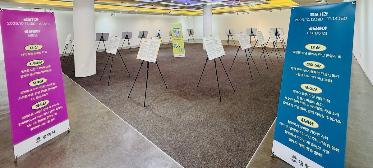 [금요저널] 평택시는 저출산 문제 해결을 위한 공감대 형성과 가족 친화적 사회 분위기 조성, 그리고 신중년 세대의 생애 설계에 대한 사회적 관심을 높이기 위해 추진한 2025년 평택시 인구정책 생활수기 공모전 「평택에서 행복을 택하다」의 수상작 전시회를 오는 12월 12일까지 진행한다고 밝혔다.