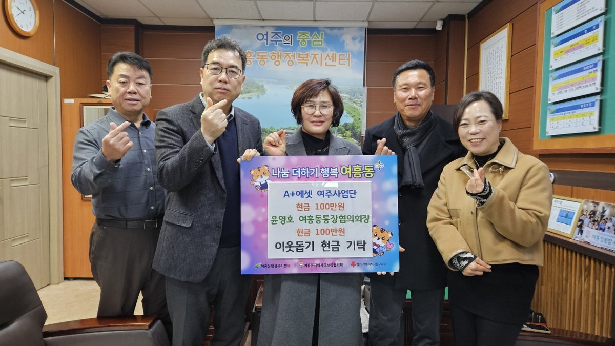 김영완 여흥동장은 “소중한 마음으로 성금을 기탁해주신 A+에셋 여주사업단께 깊이 감사드린다”며 “전달해주신 성금으로 어려운 이웃들을 꼼꼼히 살펴보겠다.”고 밝혔다.