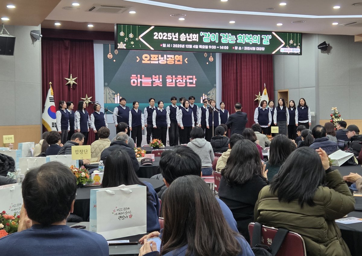 행사는 센터 이용 회원의 합창 공연을 시작으로 2025년 센터사업 영상 상영, 시상식, 축하 공연, 회복 수기 발표 등으로 진행됐다.