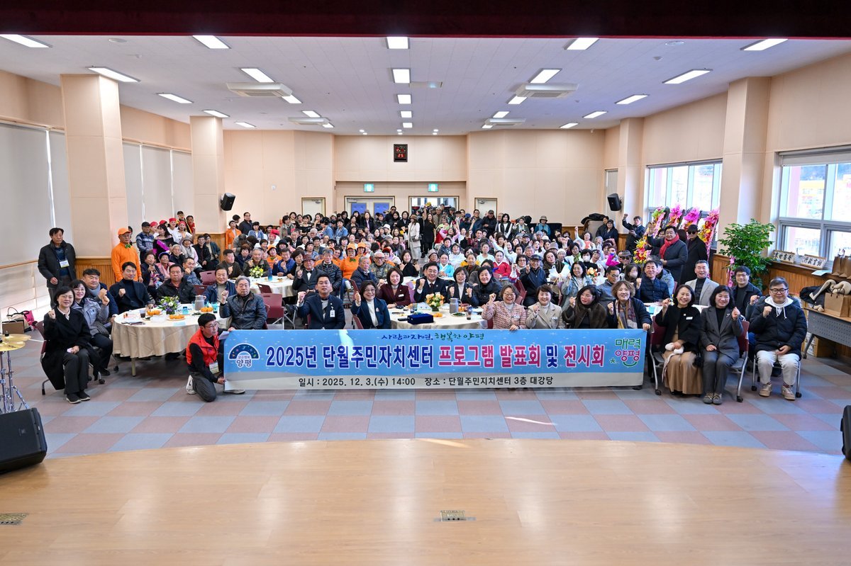 [금요저널] 단월면주민자치센터는 지난 3일 단월면다목적복지회관에서 ‘2025년 주민자치센터 종강발표회’를 개최했다이날 행사에는 전진선 양평군수를 비롯해 단월면주민자치위원, 수강생 등 200여 명이 참석했으며, 1부 기념식과 2부 문화 프로그램 발표회 순으로 진행됐다.
