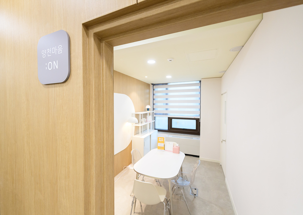 심리상담소 ‘마음:온’은 양천구 보건소(본관) 2층 정신건강복지센터 내 일부 공간을 리모델링해 조성한 것으로, 전문 상담 기능은 유지하면서도 편안한 분위기의 전용 상담 공간을 갖춘 것이 특징이다.