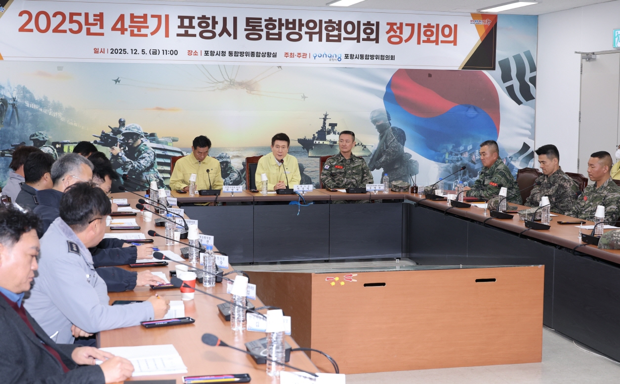 포항시는 지난 5일 포항시 통합방위상황실에서 ‘2025년 4분기 포항시 통합방위협의회 정기회의’를 개최하고 변화하는 안보 환경에 대한 대응 태세와 겨울철 재난 발생 가능성에 대비한 지역 통합방위 체계를 종합적으로 점검했다.