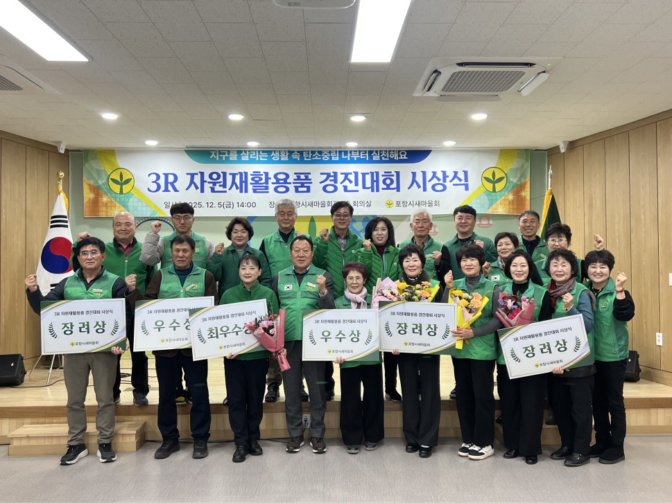 포항시새마을회는 지난 5일 포항시새마을회관에서 ‘2025년 3R 자원 재활용품 수집 경진대회’의 성과를 공유하고 우수 단체를 격려하는 시상식을 개최했다.