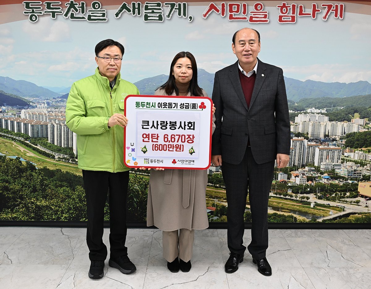 이날 기탁식에는 큰사랑봉사회 김은미 회장을 비롯해 동두천연탄은행 오성환 대표, 연탄 기탁에 협력한 임플란트치과의원 정영욱 원장이 참석해 나눔의 의미를 함께했다.