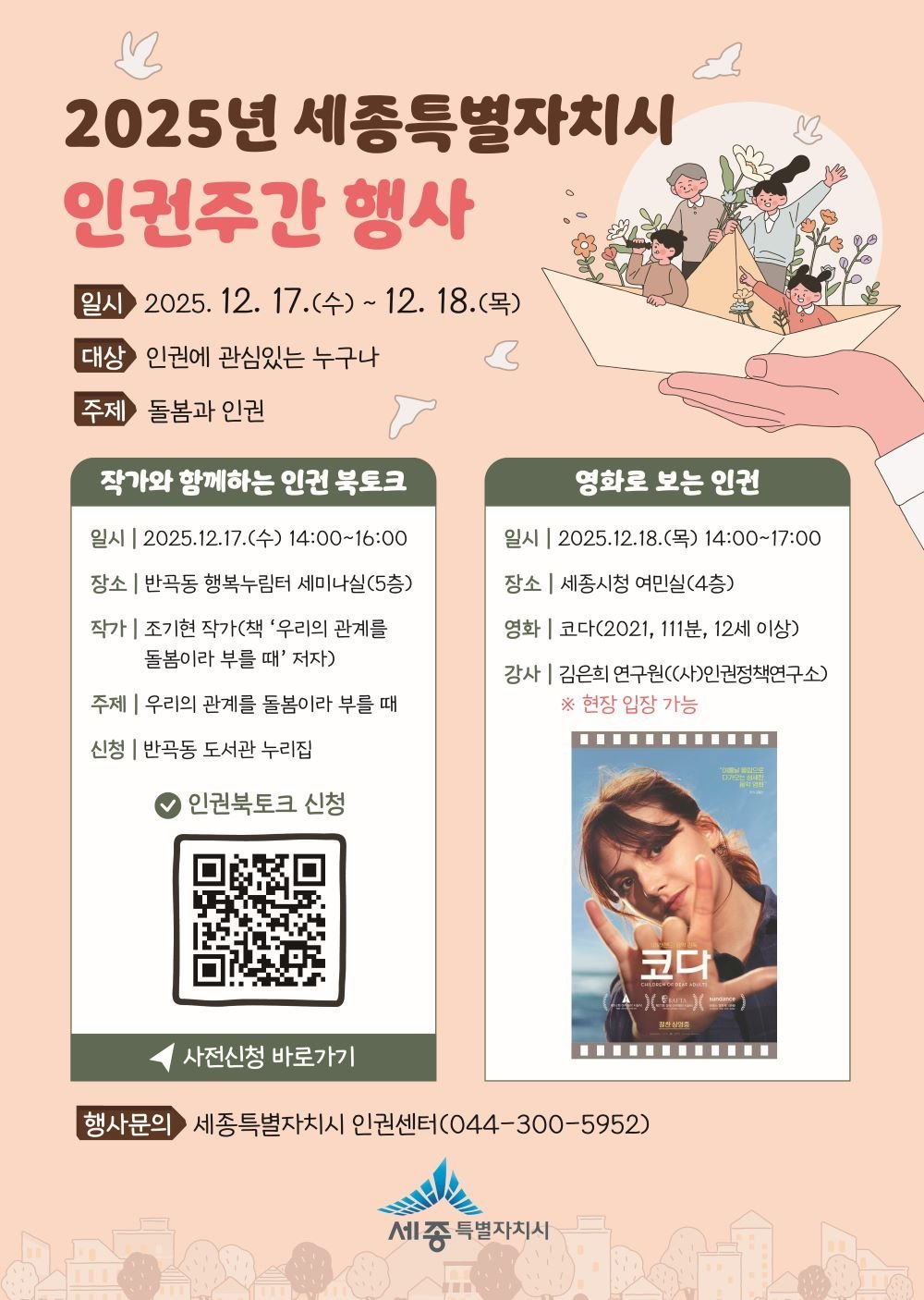 [금요저널] 세종특별자치시가 12월 10일 세계인권선언기념일을 맞아 지역 사회 인권문화 확산을 위해 오는 17∼18일 ‘2025 세종시 인권주간 행사’를 개최한다.