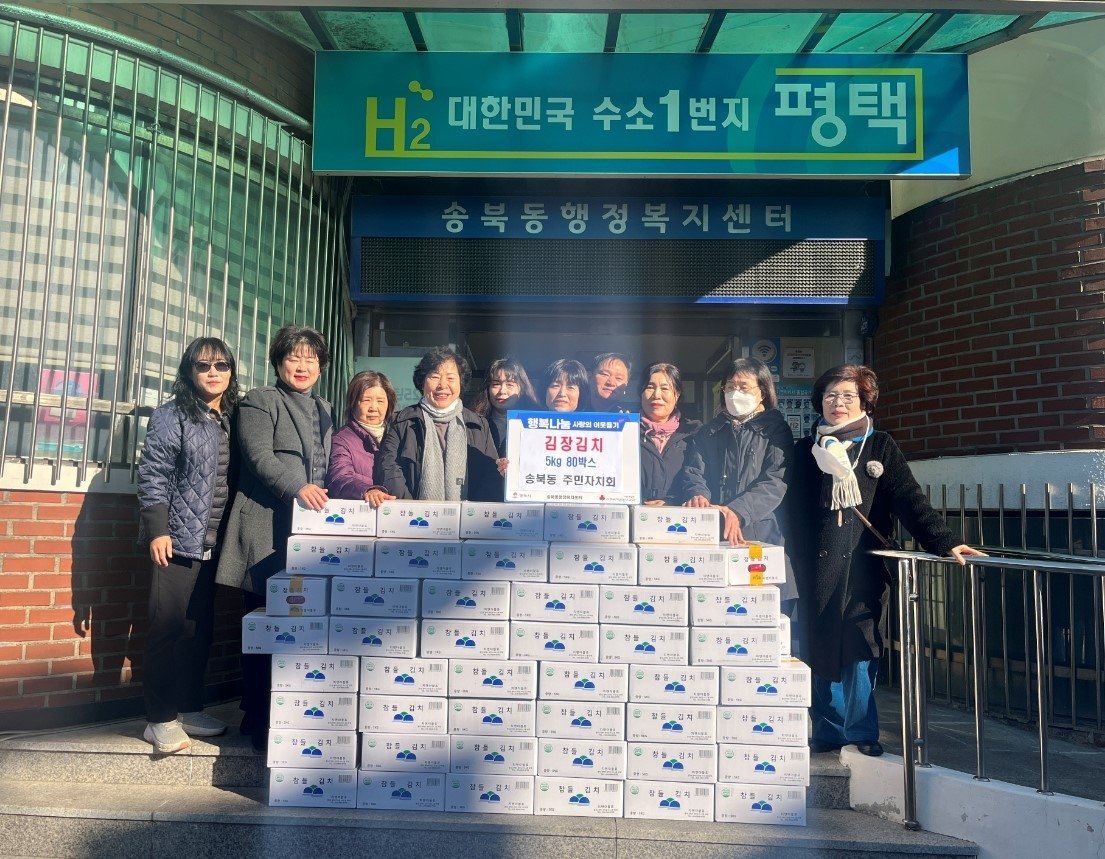 [금요저널] 평택시 송북동 주민자치회는 올해에도 지역 내 취약계층의 겨울나기를 돕기 위해 지난 8일 김장김치 5㎏ 80박스를 송북동 행정복지센터에 전달했다.