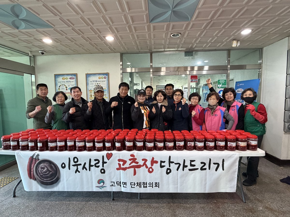 김종철 고덕면 단체협의회장은 “추운 날씨에도 어려운 이웃들에게 고추장을 담가드리며 이웃 간의 정을 나누는 뜻깊은 행사에 함께하신 회원들께 감사드린다”며, “고덕면 단체협의회는 앞으로도 어려운 이웃과 함께하는 이웃사랑 실천에 앞장서겠다”고 말했다.