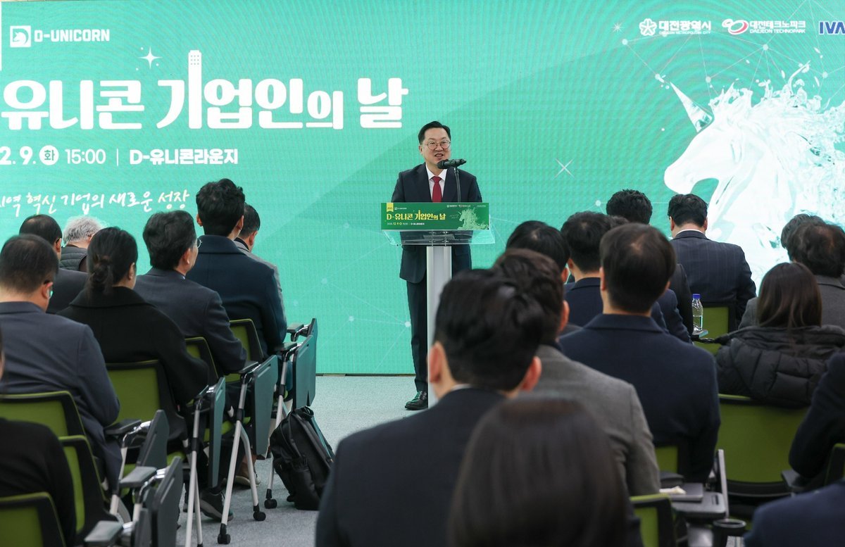 이날 행사는 2025년 D-유니콘프로젝트 성과보고와 함께 매출 실적 등이 우수한 ㈜니바코퍼레이션, ㈜제이제이엔에스, ㈜에코인에너지 3개 사에 대한 우수 창업기업 표창이, D-유니콘프로젝트 수행기관인 대전테크노파크에는 기업지원 유공 표창이 수여됐다.