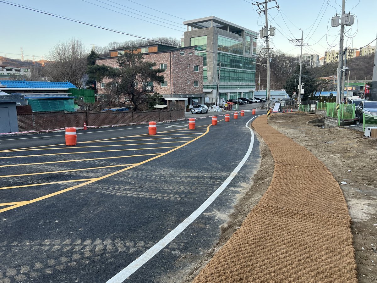 이번에 정비한 구간 고기교 재가설 사업 구간 내 차량교행이 쉽지 않았던 구간인 고기동 164번지 일원 도로 74m다.