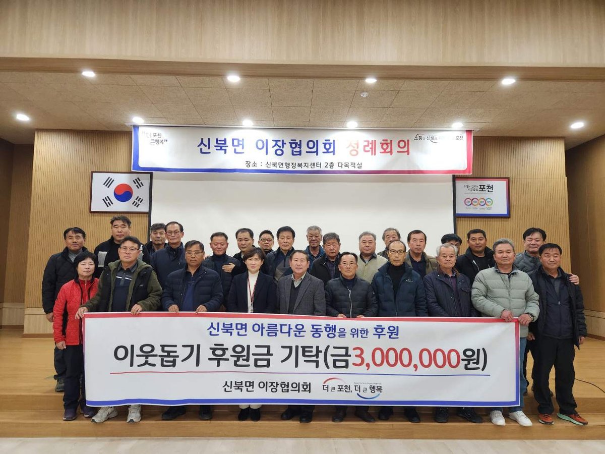 김영국 신북면 이장협의회장은 “연말을 맞아 지역사회에 작은 보탬이 되고자 성금을 마련했다”며 “앞으로도 나눔 문화 확산과 지역 발전을 위해 지속적으로 노력하겠다”고 말했다.