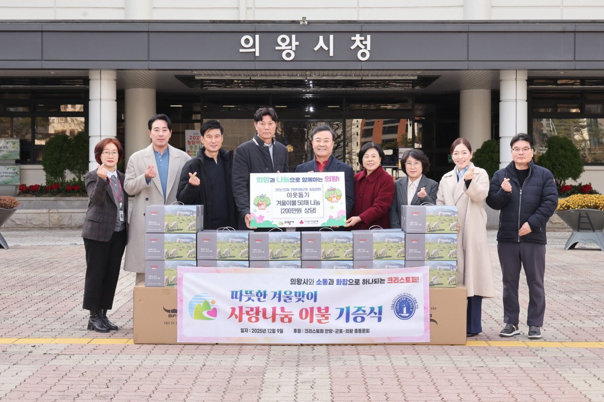 [금요저널] 의왕시는 12월 9일 크리스토퍼 안양·군포·의왕 총동문회가 관내 취약계층을 위해 이불 50채를 후원했다고 밝혔다.