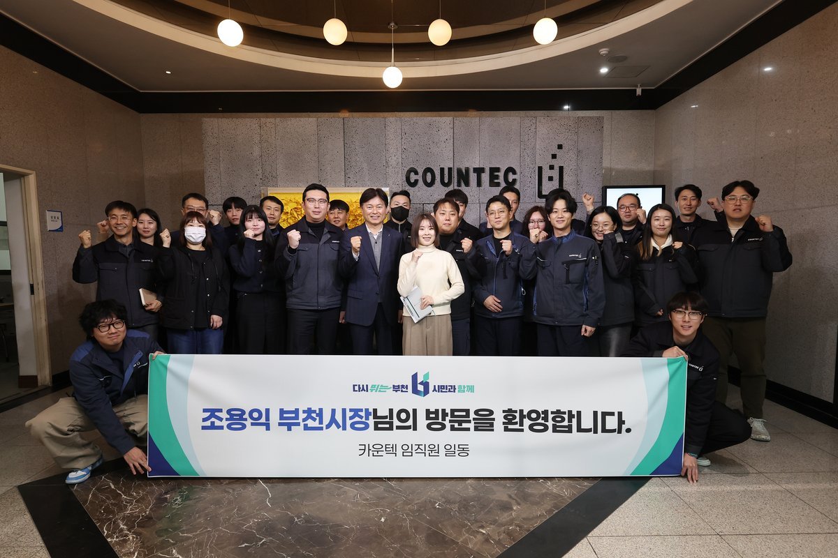 [금요저널] 부천시는 지난 9일 찾아가는 열린시장실 ‘현답부천’을 통해 글로벌 제약 장비 전문기업 ㈜카운텍과 전자 제조 분야 강소기업인 ㈜현테크씨앤아이를 방문해 생산 공정과 기술 역량을 확인하고, 기업 현장의 의견을 청취하는 시간을 가졌다.