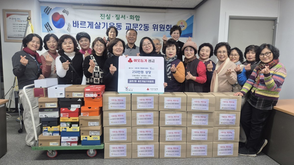 노삼영 바르게살기위원회 교문1동위원장은 “작지만 따뜻한 나눔이 어려움을 겪는 이웃들에게 힘이 되길 바란다.”라며, “앞으로도 지역사회와 함께하는 봉사와 나눔 활동을 꾸준히 이어가겠다.”라고 밝혔다.